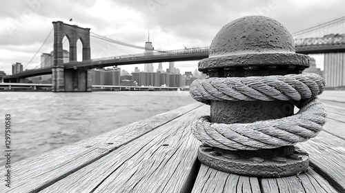 © Jagat_Aji, Obraz premium Widok na Most Brookliński, słupek na molo, panorama Nowego Jorku