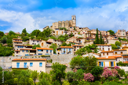 Fototapeta premium Widok na wioskę Eus w Pirenejach Wschodnich, Langwedocja-Roussillon. Eus jest wymieniana jako jedna ze 100 najpiękniejszych wiosek we Francji