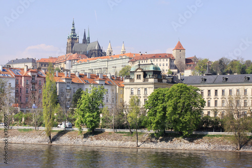 Obraz premium Widok na wiosnę gotycki Zamek Praski nad Wełtawą