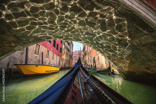 © ValentinValkov, Obraz premium Widok z gondoli podczas przejazdu kanałami Wenecji i