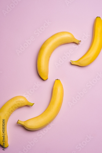Naklejka premium Widok z góry. Grupa bananów na różowym tle.