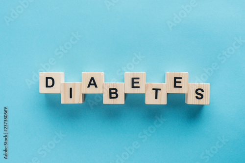 © LIGHTFIELD STUDIOS, Obraz premium widok z góry na napis „cukrzyca” z drewnianych kostek na niebieskim tle