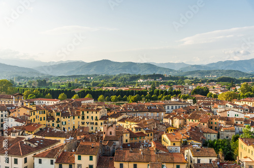 Fototapeta premium Widok z góry na tradycyjne starożytne włoskie miasto z kolorowymi domami w Toskanii