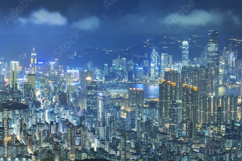 © leeyiutung, Fototapeta premium Widok z lotu ptaka Hong Kong miasto