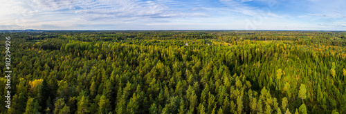© nikwaller, Fototapeta premium Widok z lotu ptaka jesieni drzewa. Kolorowe drzewa z góry. Panorama.