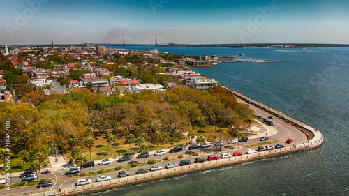 © jovannig, Obraz premium Widok z lotu ptaka miasta Charleston od rzeki, Karolina Południowa