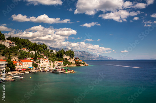 © anshar73, Naklejka premium Widok z lotu ptaka miejscowości Mimice i Adriatyku, Riwiera Omis, Chorwacja
