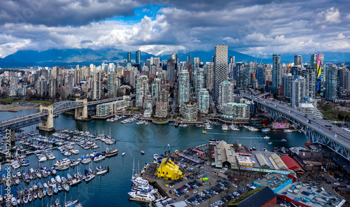 © Ferenc, Obraz premium Widok z lotu ptaka na False Creek, Granville Island i Yaletown w Vancouver