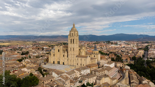 © romain, Obraz premium widok z lotu ptaka na katedrę w Segowii