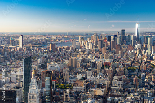 Fototapeta premium Widok z lotu ptaka na panoramę Nowego Jorku, Manhattan