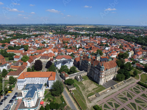 © Riko Best, Obraz premium widok z lotu ptaka na zamek Gustrow, park zamkowy, Mecklenburg-Vorpommern