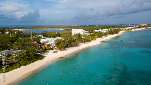 © whitcomberd, Fototapeta premium Widok z lotu ptaka Seven Mile Beach na Wielkim Kajmanie w Brytyjskich Indiach Zachodnich