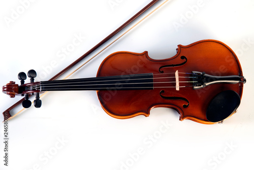 © Юлия Беляева, Fototapeta premium Widok z przodu skrzypce na białym tle. Skrzypce na białym tle, symbol muzyki klasycznej. Zamknij się skrzypce na białym tle.