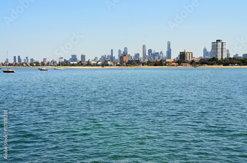 © babetka, Fototapeta premium Widoki na zatokę Port Phillip w Australii - Melbourne, Łodzie zacumowane w Port Phillip Bay, Melbourne