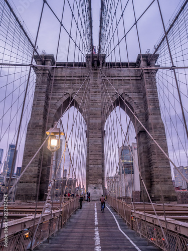 Fototapeta premium Widoki z historycznego Mostu Brooklińskiego w Nowym Jorku, USA.