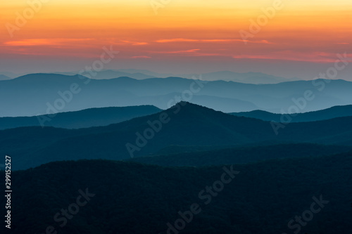 © Chansak Joe A., Fototapeta premium Widokowa podróż z punktu widokowego Cowee Mountain Overlook przy Blue Ridge Parkway o zachodzie słońca.