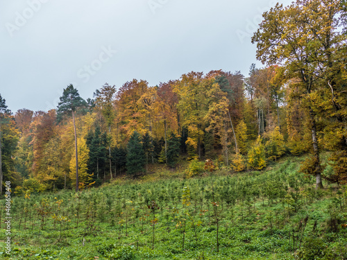 Fototapeta premium Wiederaufforstung im herbstlichen Mischwald