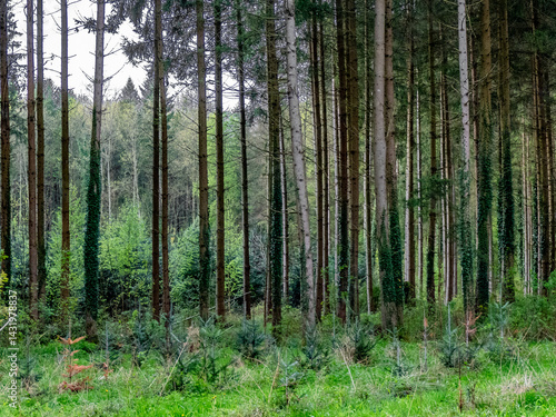 Obraz premium Wiederaufforstung im Mischwald im Frühjahr