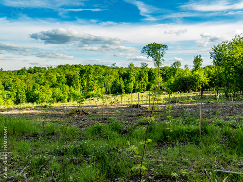 Obraz premium Wiederaufforstung im Mischwald im Frühjahr