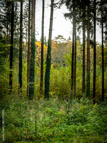 Fototapeta premium Wiederaufforstung im Mischwald im Herbst