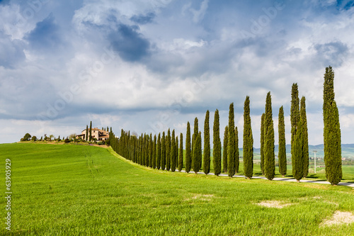 © Digitalsignal, Fototapeta premium wiejska droga otoczona cyprysami wznosząca się na wzgórze