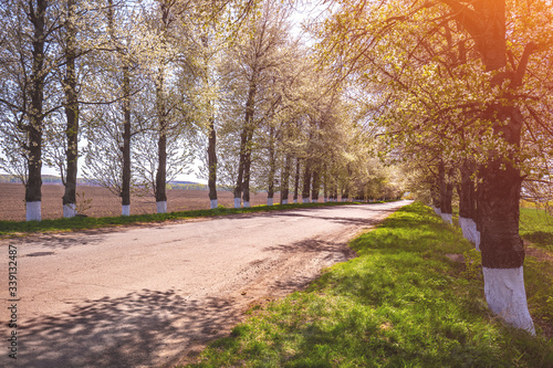Naklejka premium Wiejska droga w słoneczny dzień wiosny