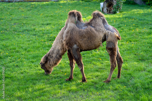 © Arkadiusz, Fototapeta premium wielbłąd dwugarbny na wybiegu na zielonej trawie w zoo
