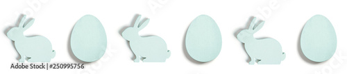 Obraz premium Wielkanocne ozdoby jajko i królik na białym tle