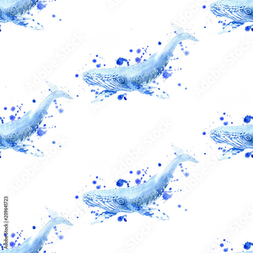 © havroshechka, Obraz premium Wieloryb akwarela rastrowy wzór.