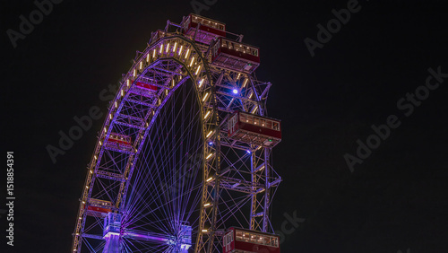 Fototapeta premium Wiener Riesenrad in Prater night timelapse - oldest and biggest ferris wheel in Austria.