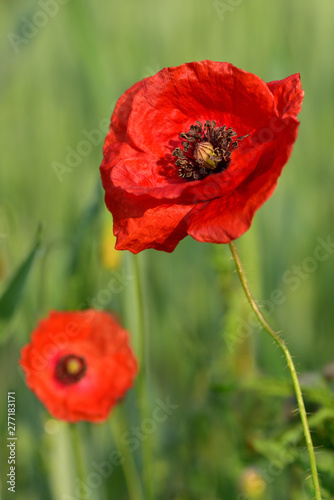 Obraz premium Wiese mit leuchtenden Mohnblumen im Sommer