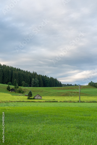 Obraz premium Wiese mit Scheune im Allgäu