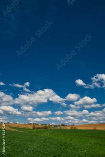 Fototapeta premium Wiesen und Felder im Sommer bewölkter Himmel