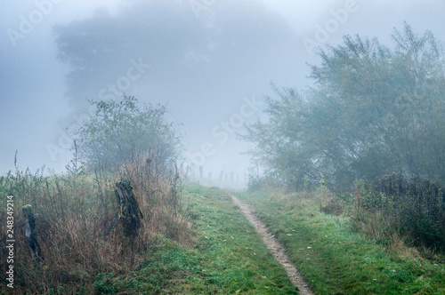 © mollphoto, Obraz premium Wiesenpfad im Nebel