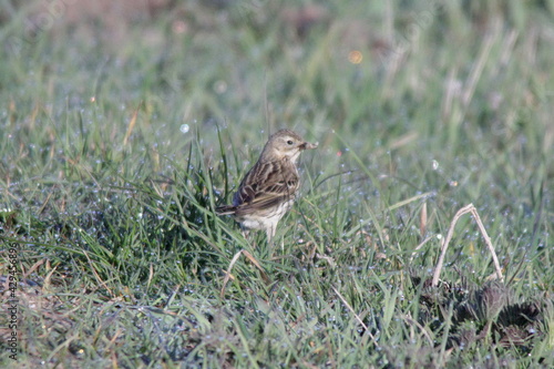 © greifvogel.info, Obraz premium Wiesenpieper mit Beute