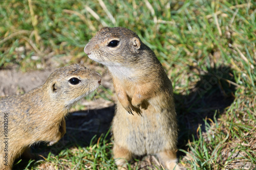 © Pavol Klimek, Fototapeta premium Wiewiórka czai się i je w trawie