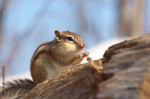 © stockfoto, Obraz premium Wiewiórka Ezo na zwalonym drzewie