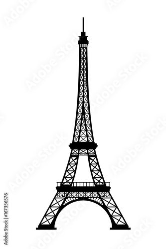 © krung99, Obraz premium Wieża Eiffla czarna sylwetka na białym tle, renderowania 3D