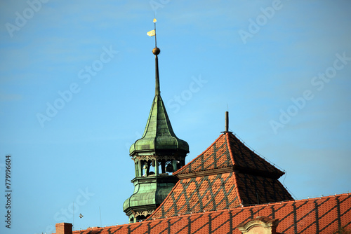 © Stanisław Błachowicz, Obraz premium Wieża i dach zamku w Niemodlinie, Polska, widok z lotu ptaka.