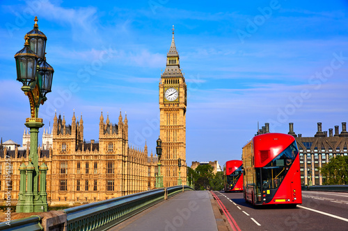 © lunamarina, Fototapeta premium Wieża zegarowa Big Bena i autobus w Londynie