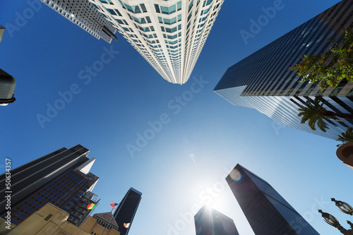 Fototapeta premium Wieżowce Los Angeles, widok z dołu