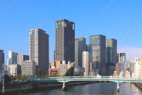 © soraneko, Fototapeta premium Wieżowce w Nakanoshima-Osaka, Japonia