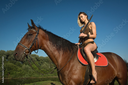 © Demian, Fototapeta premium Wild amazon girl on horseback
