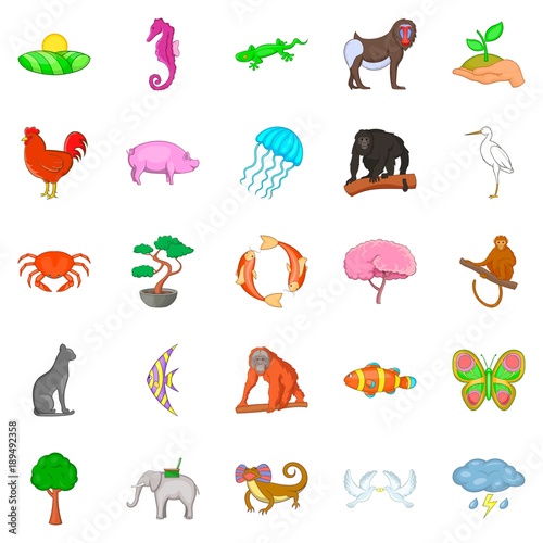 © ylivdesign, Naklejka premium Wild animal icons set, cartoon style