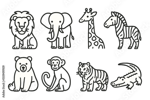 © Igor, Obraz premium Wild animal outline icons set – silhouette, wildlife and nature symbol collection