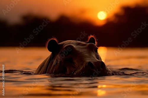 © Arisctur, Fototapeta premium wild animal silhouette at sunset, generative ai
