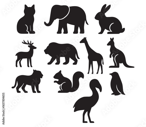 Fototapeta premium Wild Animal Silhouette Icon Set – Jungle, Safari, Zoo Vector Illustrations
