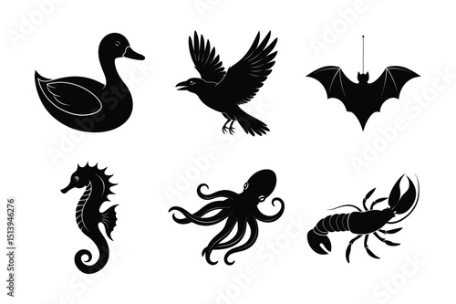 © MdJobaidul, Naklejka premium Wild Animal Silhouettes Set