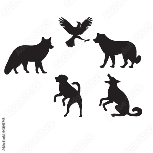 Fototapeta premium Wild Animal Silhouettes Vector: Wolf, Eagle, Dog, Fox Illustrations