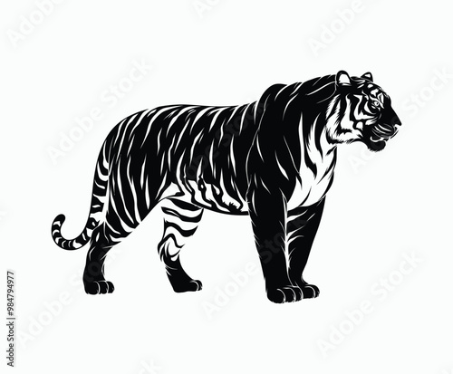 Fototapeta premium Wild animal tiger silhouette EPS vector isolated illustration template on a...